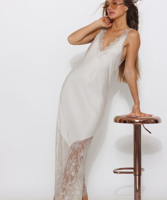 שמלת משי V תחרה