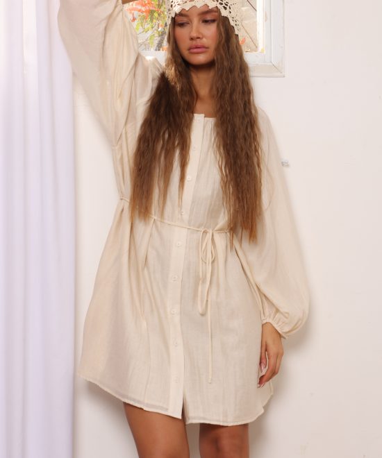 שמלה מכופתרת שרוולים תפוחים