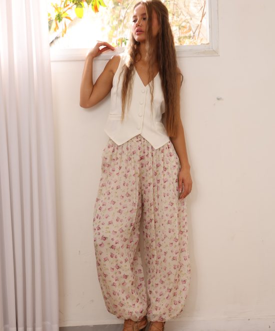 מכנס שיפון בלון פרחוני