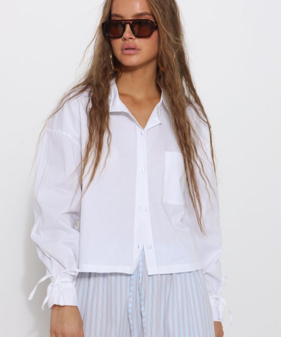 חולצה מכופתרת קרופ קשירה בשרוול