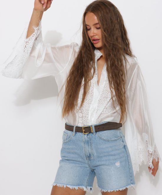 שורט משי ווש בשילוב תחרה