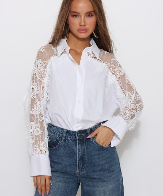 חולצה מכופתרת שרוול תחרה