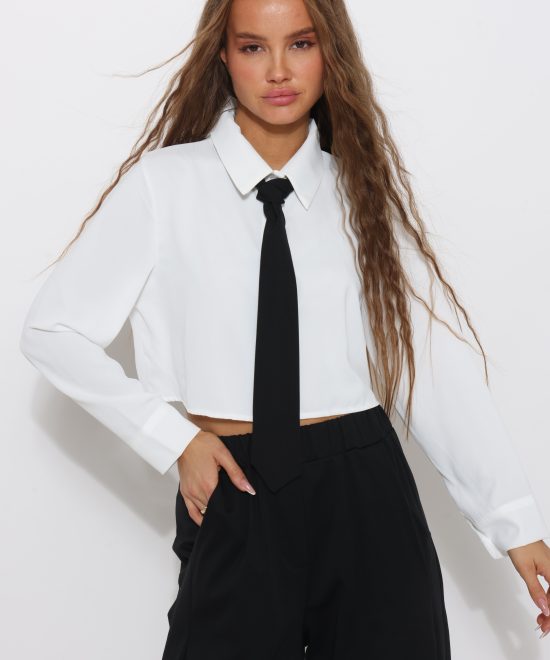 חולצה מכופתרת קרופ בשילוב עניבה
