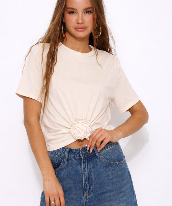 טי-שירט פרח כריות בכתפיים